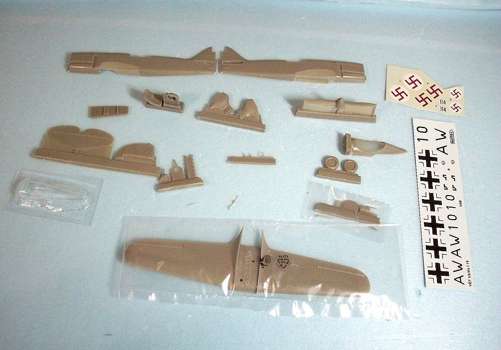 Upon opening the box, one is greeted with a simple resin kit of an aircraft so obscure that even though I pride myself on my knowledge of WWII aircraft and have built over 100 resin kits of many obscure aircraft, I even had to look this one up!