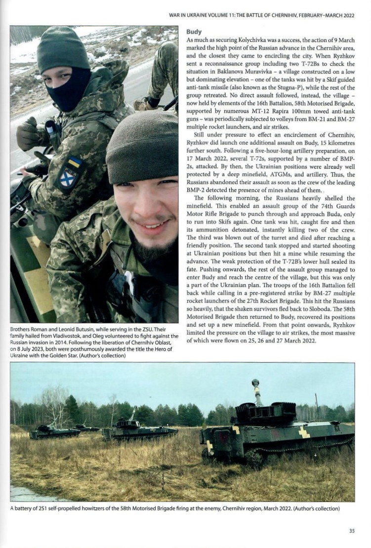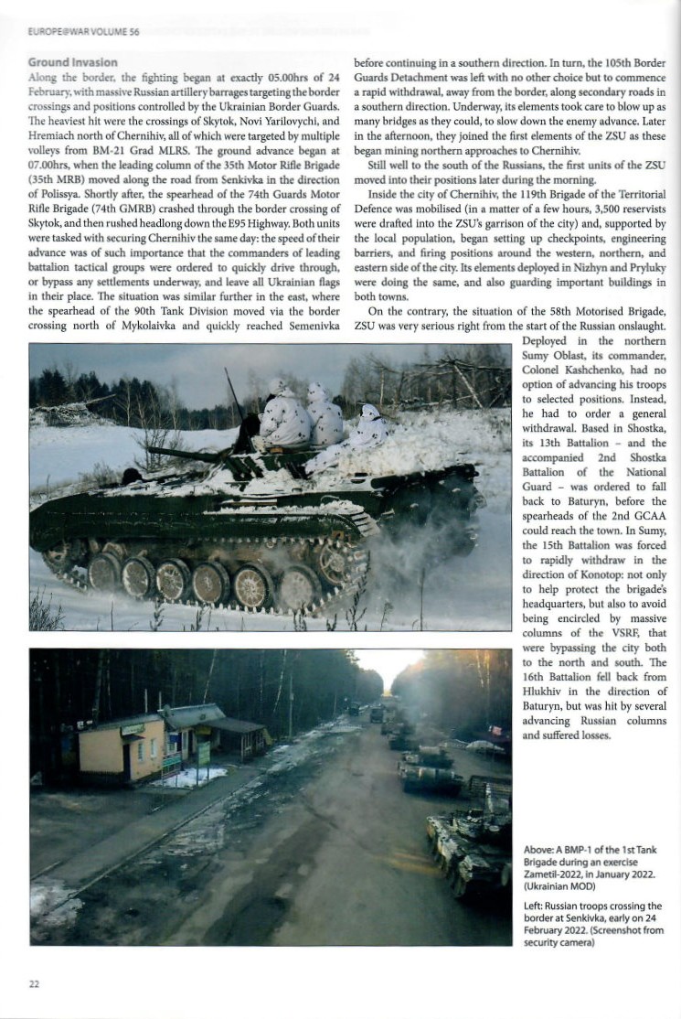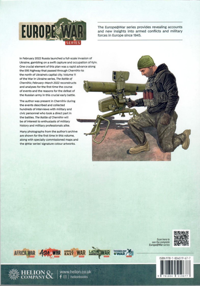 This 72-page paperback book is part of Helion & Company’s @War Series. War in Ukraine Volume 11-The Battle of Chernihiv, February-March 2022 (Helion No. HEL2113) is outlined in the familiar @War format with 70 color photographs, five black and white photographs, 21 color profiles, six tables and four color maps. The book is composed of the following sections: