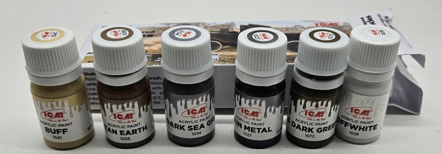 ICM has been releasing quality kits, figure sets, and recently paints to support their vast library of releases. Today, we see a set dedicated to WWI Armored Vehicles. These are water-based acrylic paints that can be brushed as is or airbrushed after thinning with either distilled water or ICM brand thinner. They come in screw top bottles that are wide-mouth and not dropper bottles, so I used my handy pipette to dole out smaller quantities for testing.
